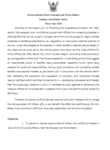 พ.ต.อ.วุฒิชัย สุคนธวิท ผกก.สภ.ชัยพฤกษ์ ประกาศเจตนารมณ์ของหน่วยงาน ประกาศ เจตนารมณ์ ในการป้องกันการและต่อต้านการทุจริตชองสถานี และประกาศ เจตนารมณ์ไม่รับ ของขวัญ และสินบนอื่นใด ทุกชนิดจากการปฏิบัติหน้าที่ ในหน่วยงาน