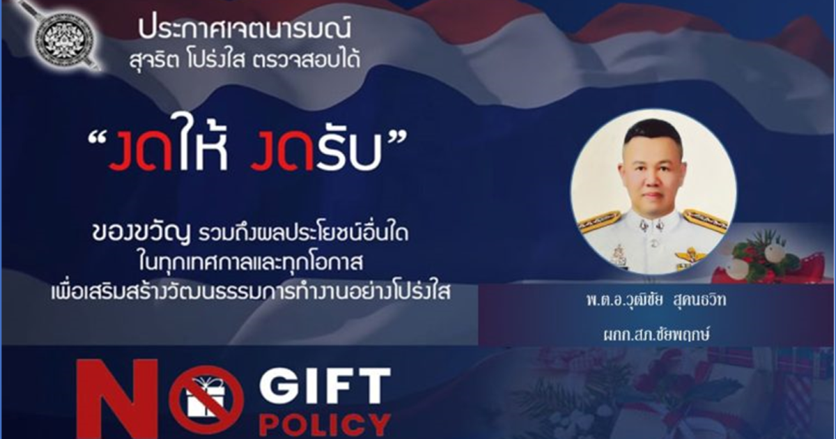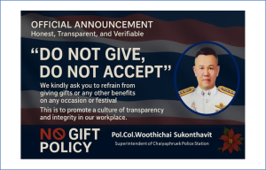 ข้าราชการตำรวจทุกสายงาน ร่วมประกาศ ไม่ให้ ไม่รับ และจะต่อต้านการทุจริตทุกรูปแบบ (NO GIFT POLICY)