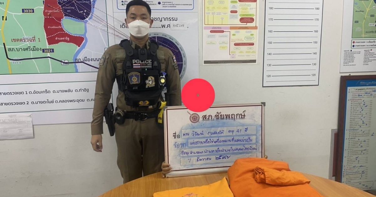 พฤติการณ์ :เจ้าหน้าที่ตำรวจสายตรวจ ได้รับแจ้งจากศูนย์วิทยุ สภ.ชัยพฤกษ์ ว่ามีพลเมืองดีแจ้งว่ามีชายแต่งกายคล้ายพระสงฆ์ น่าสงสัยว่าจะเป็นมิจฉาชีพ อยู่ในบริเวณที่เกิดเหตุ (ตลาดนัด18 คอร์ด ถนนราชพฤกษ์) จึงรีบเดินทางเข้าไปตรวจสอบ ตรวจสอบ ไม่มีเอกสารใบสุทธิบัตรที่แสดงว่าเป็นพระสงฆ์ จึงเชิญตัวเข้าสถานี ต่อมาผู้ต้องนี้รับว่าไม่ได้บวชเป็นพระจริง จึงทำการจับกุมแล้วนำตัว ส่งพนักงานสอบสวนสภ.ชัยพฤกษ์ ดำเนินคดีต่อไป