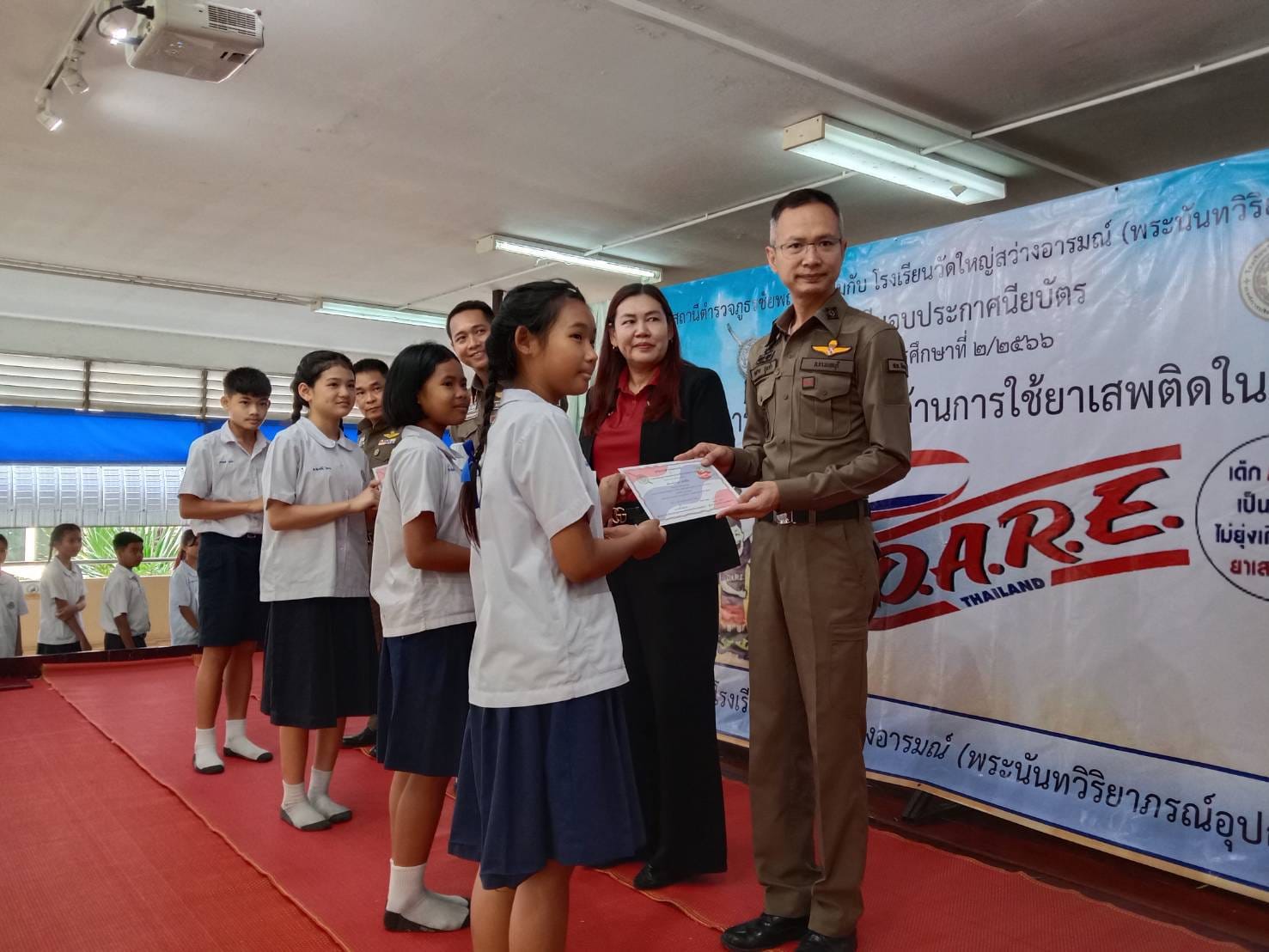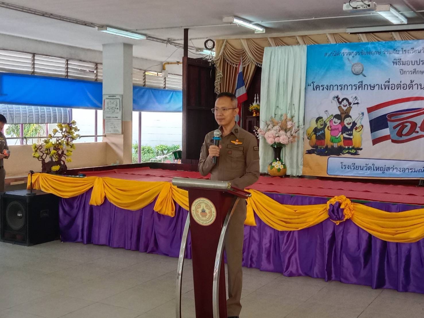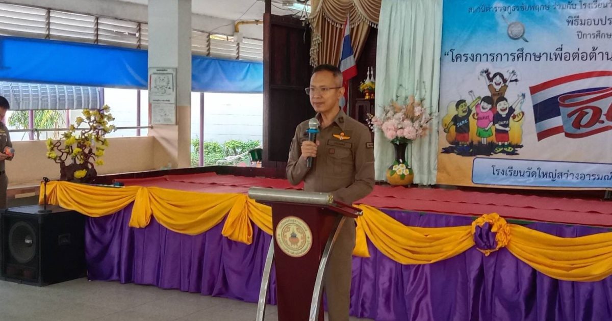 พ.ต.อ.สมชาย ชูแก้ว ผกก.สภ.ชัยพฤกษ์ ร่วมพิธีปิดและมอบใบประกาศนียบัตรตามโครงการ D.A.R.E. โรงเรียนวัดใหญ่สว่างอารมณ์