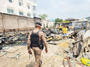 สภ.ชัยพฤกษ์ตรวจสอบเหตุเพลิงไหม้บริเวณแคมป์พักคนงานภายในซอยนวลละออ ม.3 ต.คลองพระอุดม อ.ปากเกร็ด จ.นนทบุรี