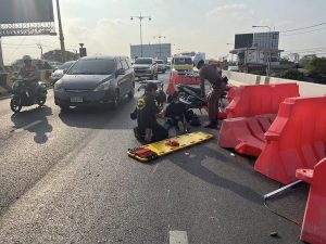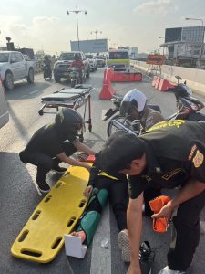 สภ.ชัยพฤกษ์ งานจราจรเข้มแข็งช่วยเหลือประชาชนออกมาจากรถที่เกิดเหตุ