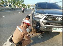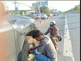 ส่งเสริมภาพลักษณ์ด้านบวก 3 พฤศจิกายน 2566 โดย Admin / ข่าวประชาสัมพันธ์ สภ.ชัยพฤกษ์ ภ.จว.นนทบุรี ภายใต้การอำนวยการของ พ.ต.อ.พิทยากร เพชรรัตน์ ผกก.สภ.ชัยพฤกษ์ พ.ต.ต.ปิยะพงศ์ นวลแก้ว สว.จร.สภ.ชัยพฤกษ์ วันที่ 29 ต.ค.2566 เวลาประมาณ 09.10 น เจ้าหน้าที่ตำรวจจราจร ได้ตรวจสอบเส้นทางการจราจร พบรถจอดเสียจึงเข้าไปสอบถามพบว่ารถยางแบน จึงได้ช่วยกันเปลี่ยนยางจนรถสามารถใช้การได้เป็นปกติ เป็นที่พอใจของประชาชน