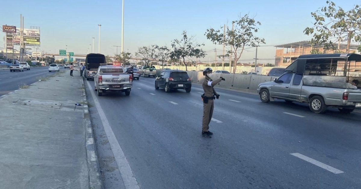 เจ้าหน้าที่ตำรวจจราจร สภ.ชัยพฤกษ์ พบรถเสียให้การช่วยเหลือเปิดสัญญาณไฟป้องกันไม่เกิดอุบัติเหตุบริเวณถนนราชพฤกษ์