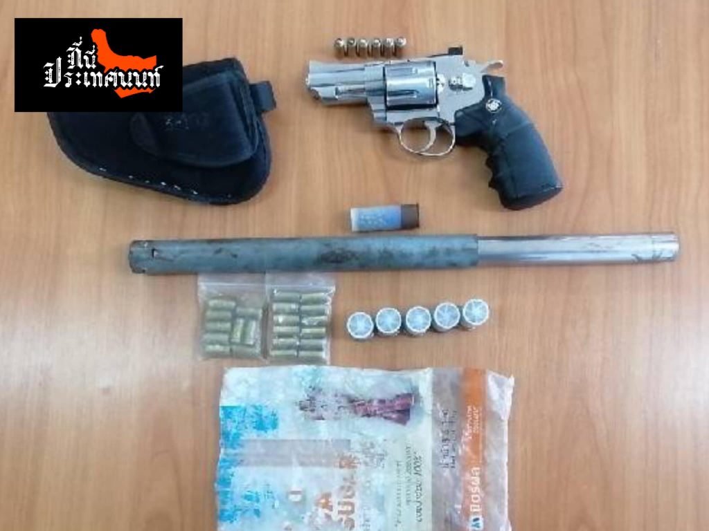 1.อาวุธปืนพกสั้นชนิดลูกโม่ดัดแปลงจากปืน บีบีกัน จำนวน 1 กระบอก