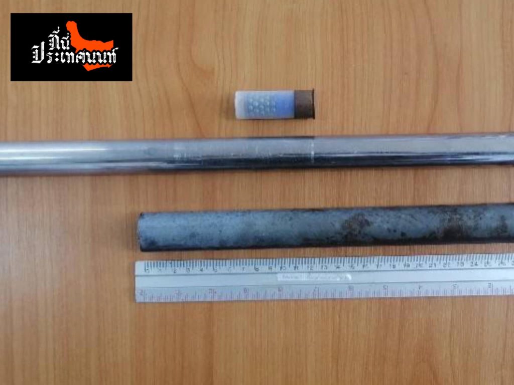 2.อาวุธปืนไทยประดิษฐ์ลักษณะเป็นแท่งเหล็กทรงกลมแบ่งเป็นส่วนลำกล้องและส่วนเข็มแห่งชนวน จํานวน 1 ชุด