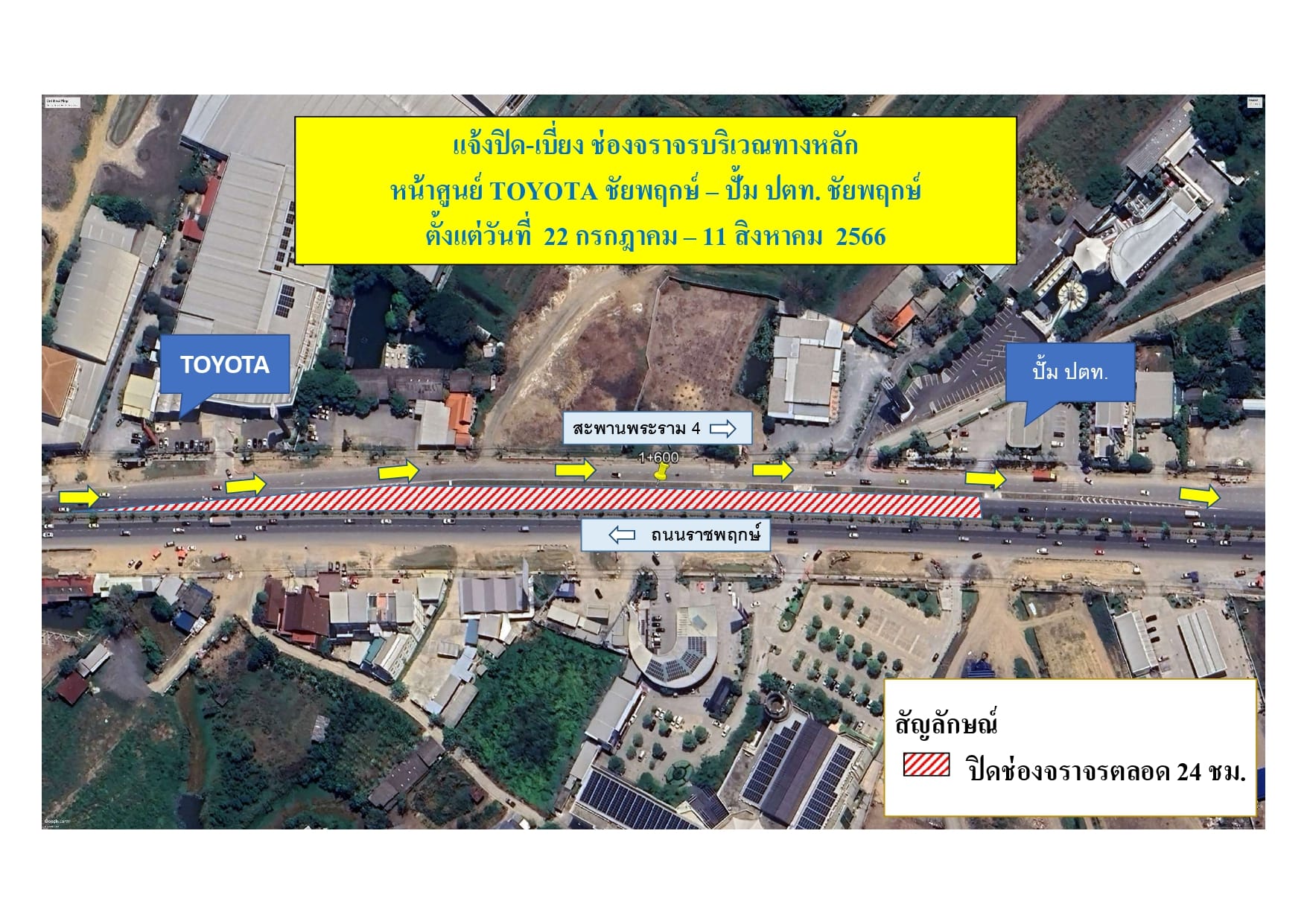 แจ้งประกาศมีการปิดการจรารถนนชัยพฤกษ์