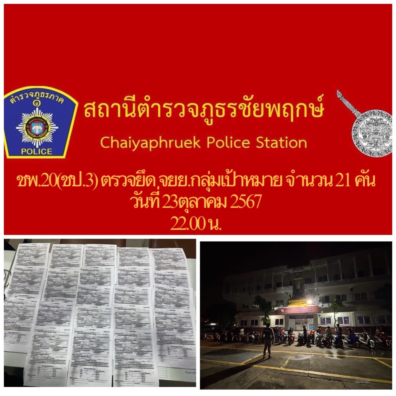 📍สภ.ชัยพฤกษ์ ภ.จว.นนทบุรี +++++++++ 📍รายงานผลการปฎิบัติตรวจยึด รถ จยย. เป้าหมาย รวม 21 คัน ตามข้อส