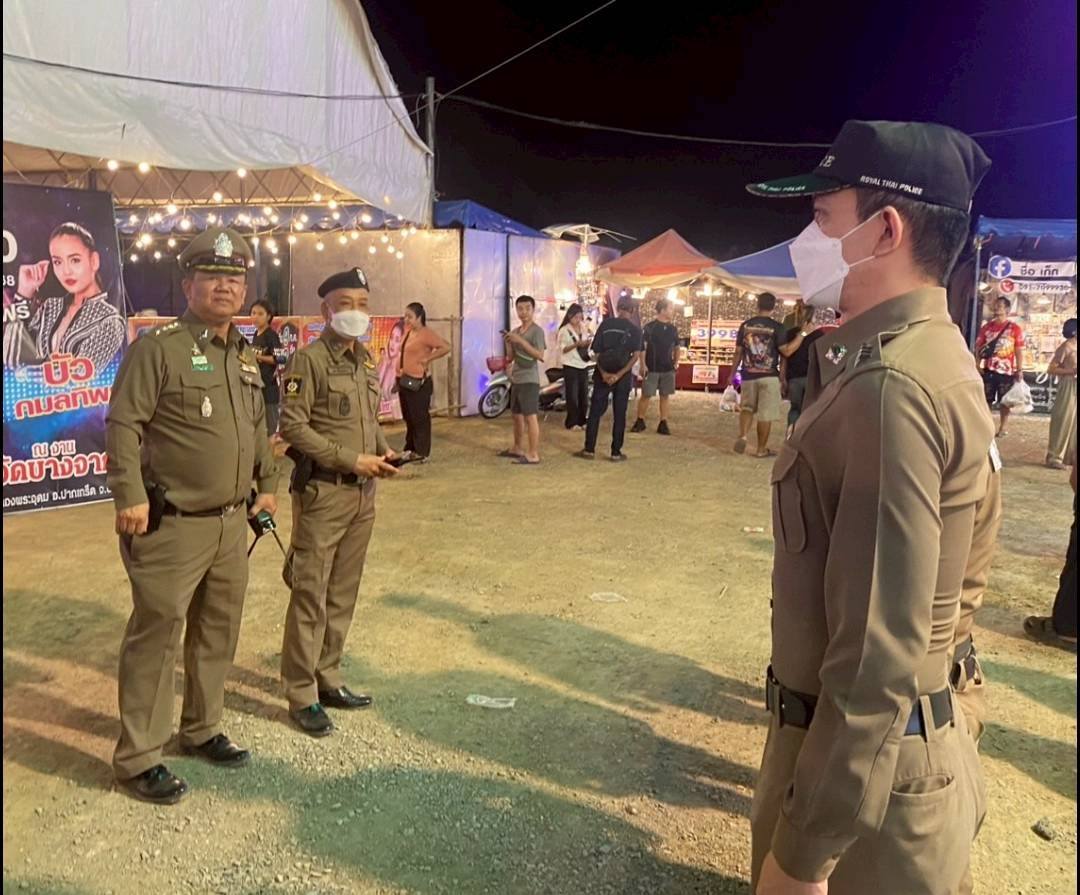พ.ต.อ.วุฒิชัย สุคนธวิท ผกก. สภ.ชัยพฤกษ ตรวจงานมหรสพวัดบางจาก กำชับจราจรกรณีลานจอดรถเต็มให้ปิดทางเข้า