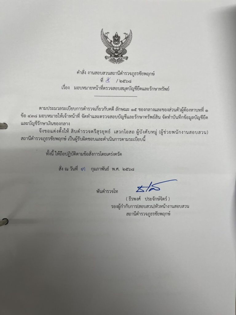 O23 การจัดการทรัพย์สินของราชการ ของบริจาค การจัดเก็บของกลาง และการรายงานผล